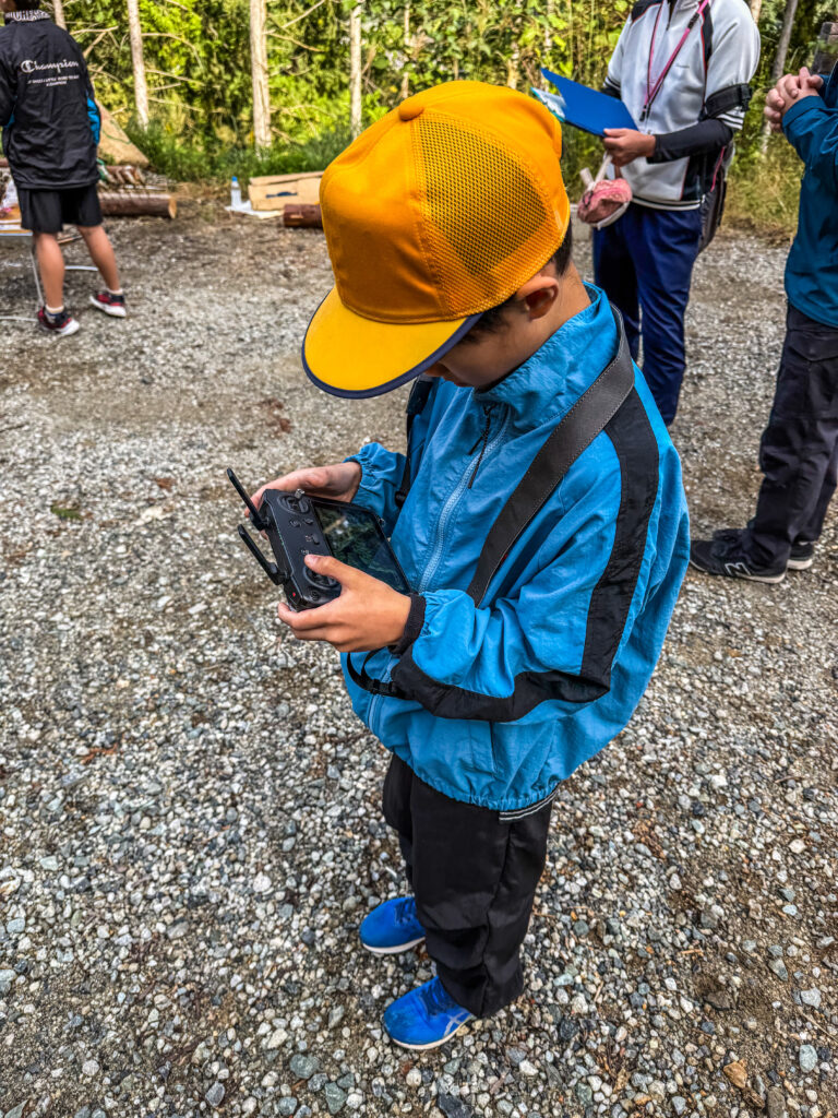重機やドローン体験の後、アマゴを食べとても楽しんでくれました。