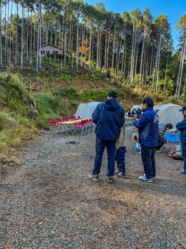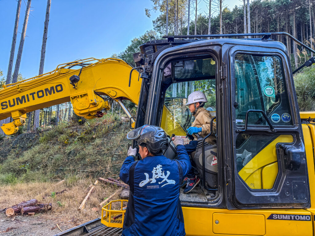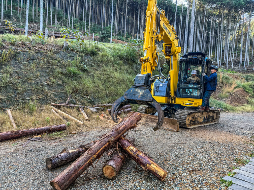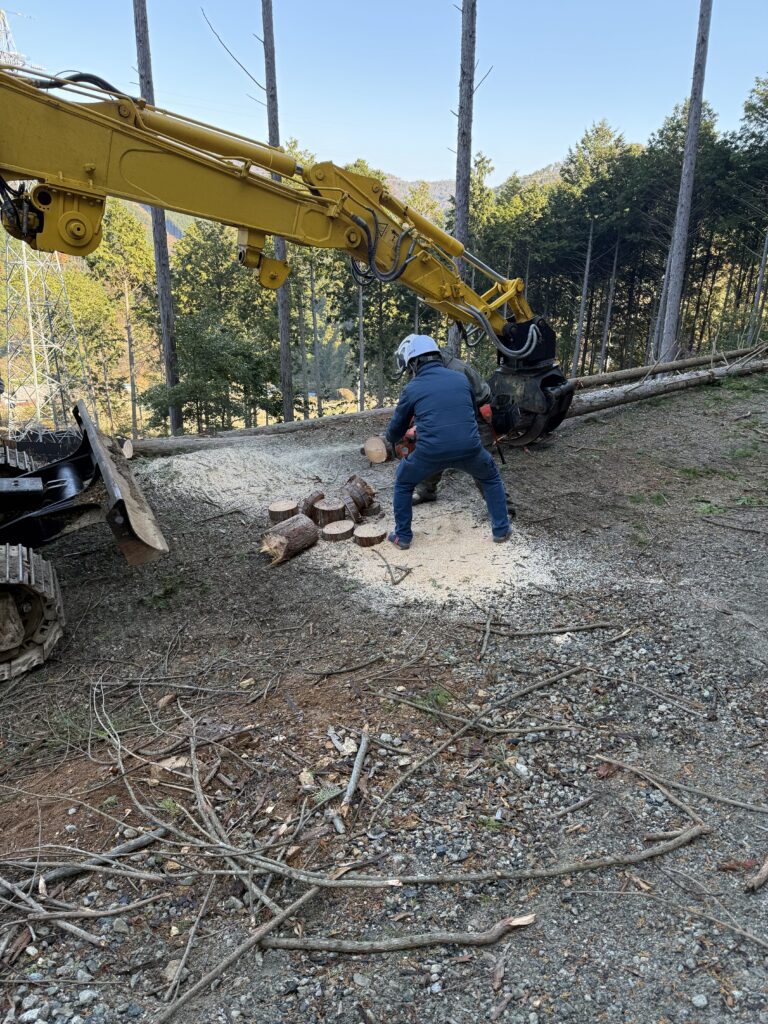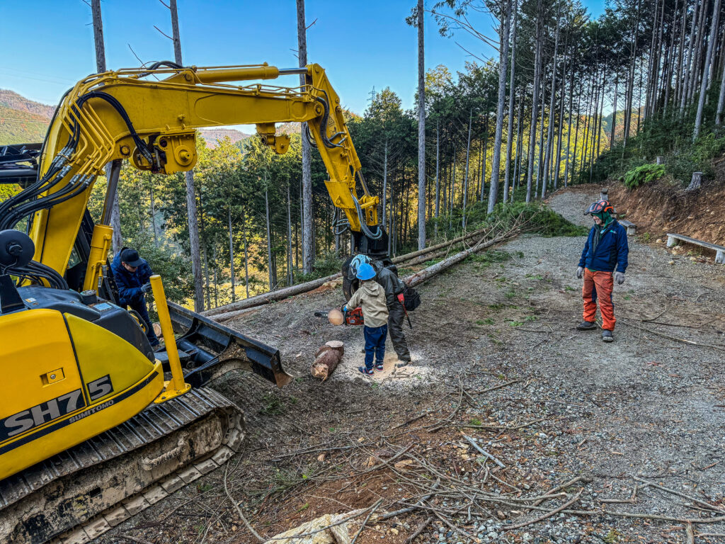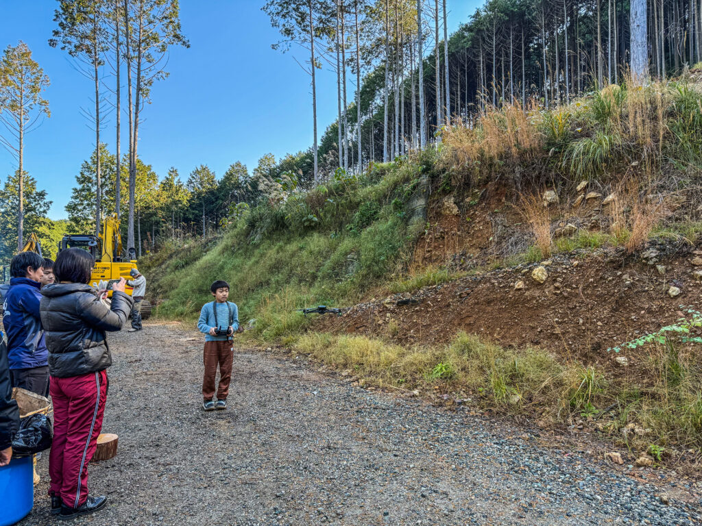 伐倒見学の後、重機、チェーンソー、ドローン、最後に植林体験をしていただきました。